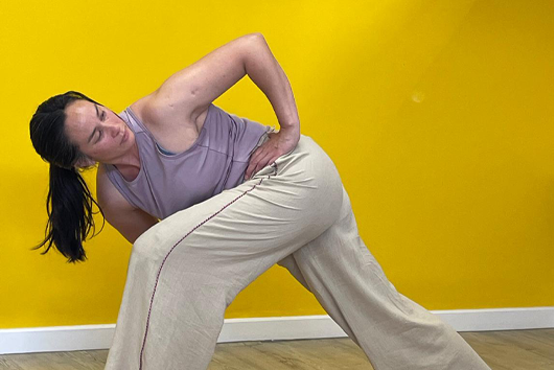 Docent: trainer Marcia Vroegindeweij. Sinds 2024 volg en beoefend ik lessen van Tulku Lobsang Rinpoche. In 2025 heb ik de Lu Jong 1 en De Vijf Elementen teacher training afgerond waardoor ik mag lesgeven in zijn traditie. Dit doe ik met veel plezier en liefde vanuit mijn praktijk Moksi in De Bilt. (Foto Drongmo Sur Dung - Houding 2 van de vijf elementen serie Lu Jong1)