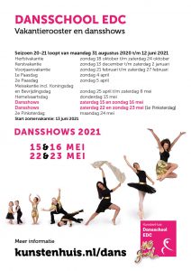 Annuleren: Annuleren kan uitsluitend schriftelijk via e-mail. Of hier kosten aan verbonden zijn, hangt af van de datum van annulering. Zie voor verder uitleg onze algemene voorwaarden. Voor peuterdans-cursussen geldt dat er gedurende het hele jaar kosteloos geannuleerd kan worden tegen betaling van de gevolgde lessen.